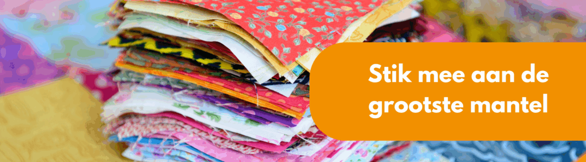 In totaal hebben we 209 patchworkdekens nodig om de grootste mantel te maken. Dat betekent: er is nog wat knip- en naaiwerk aan de winkel, en jij kan helpen!