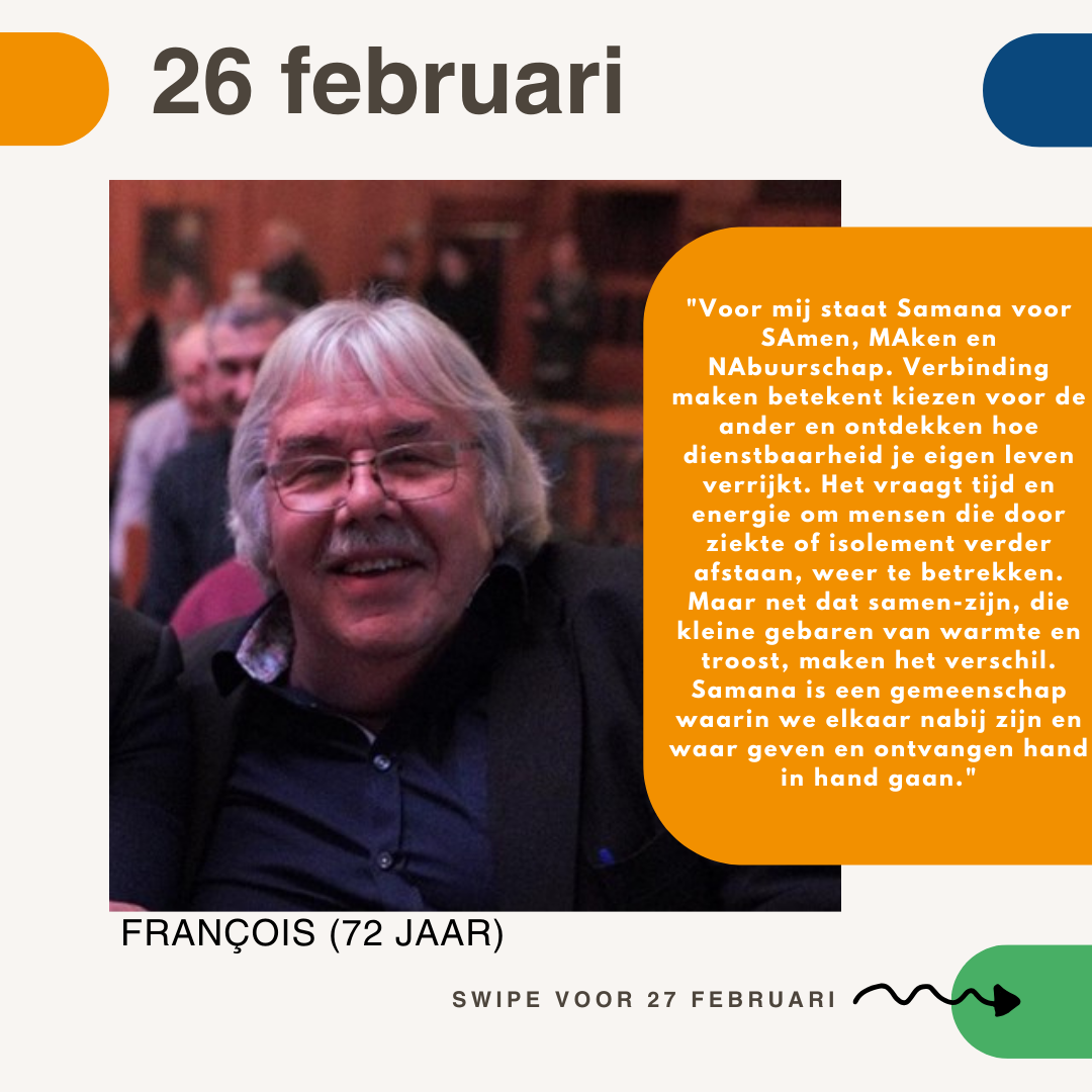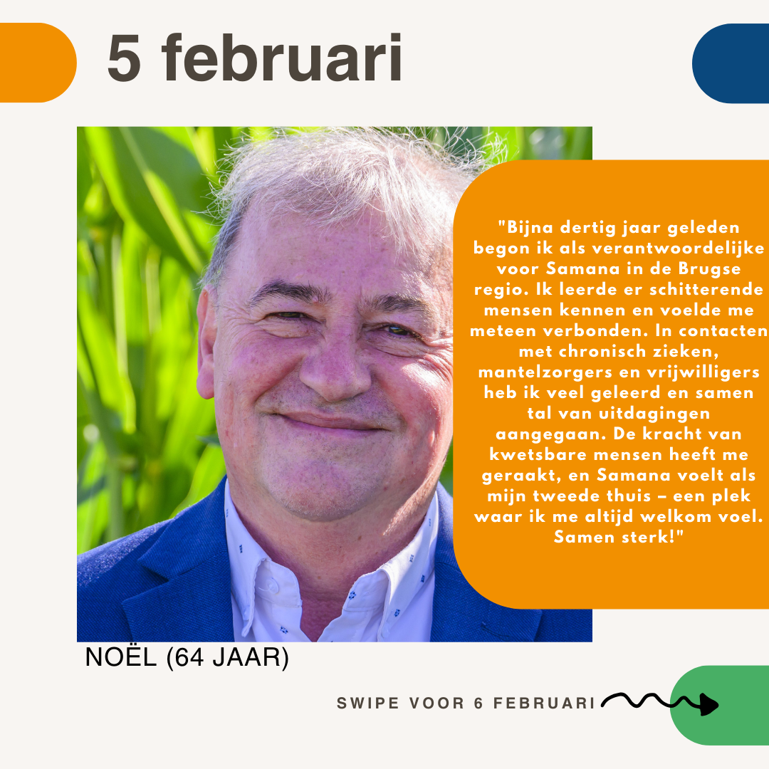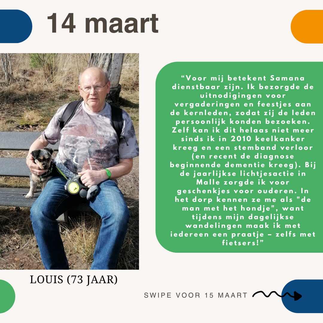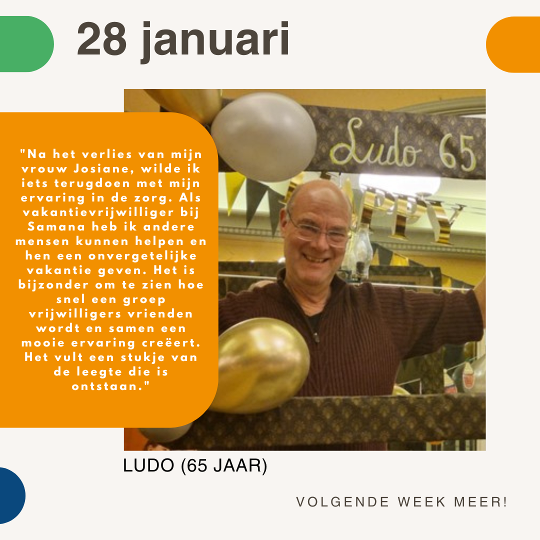 De kracht van verhalen: In ons digitale verjaardagsvriendenboek delen we dagelijks een ontroerend verhaal van een jarig Samana-lid. Zoals het verhaal van Ludo, die op 28 januari 65 werd: