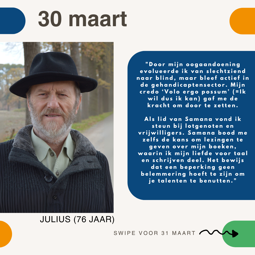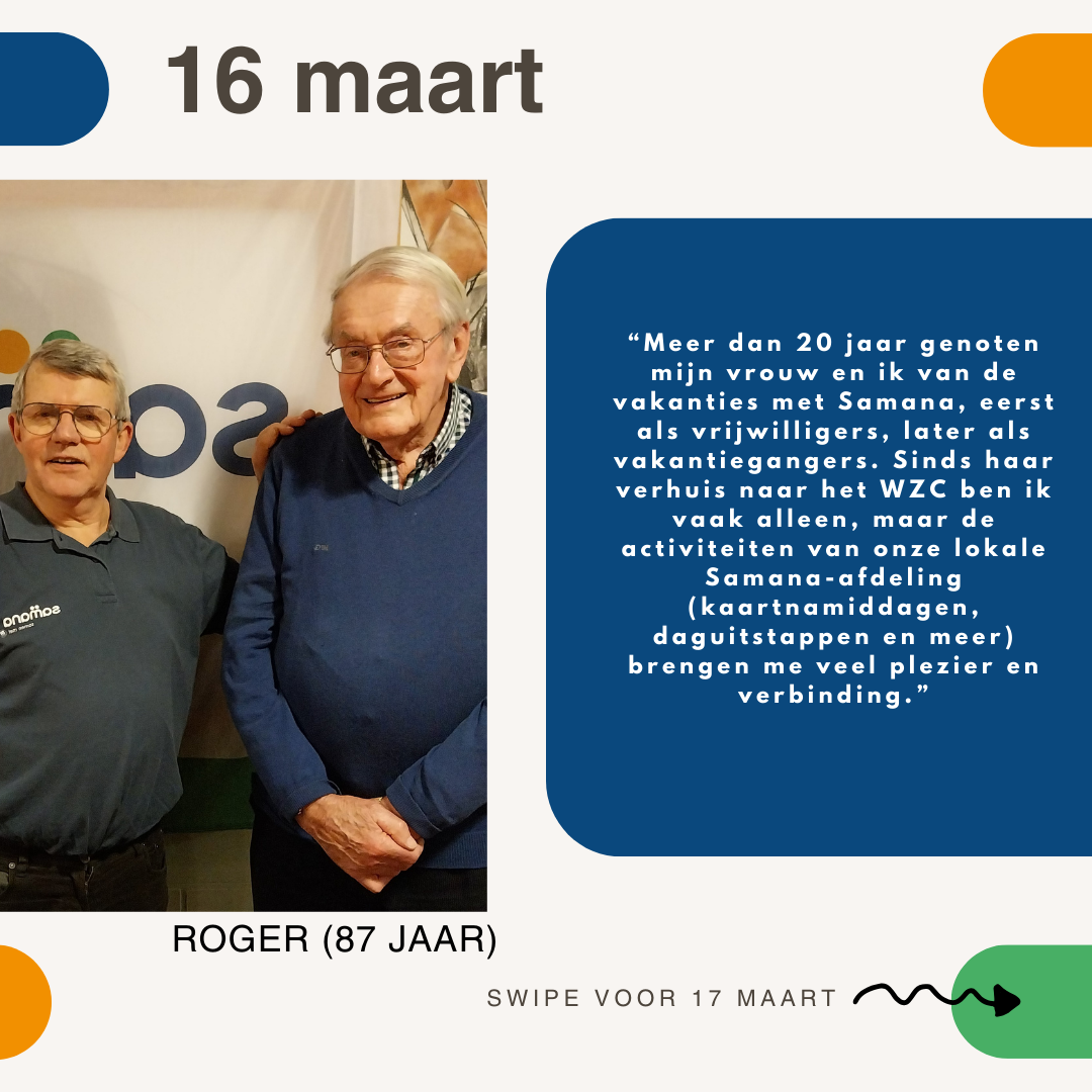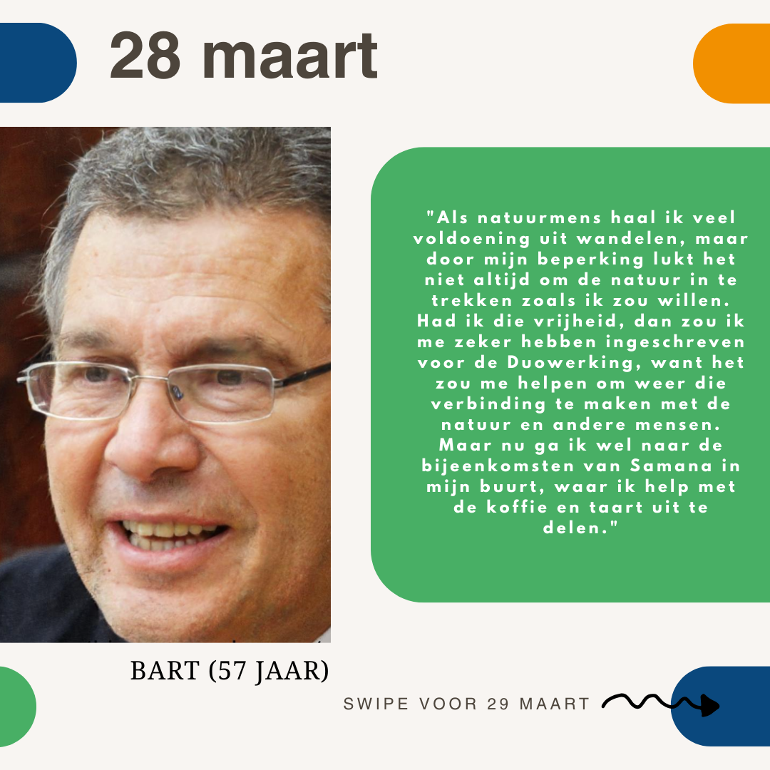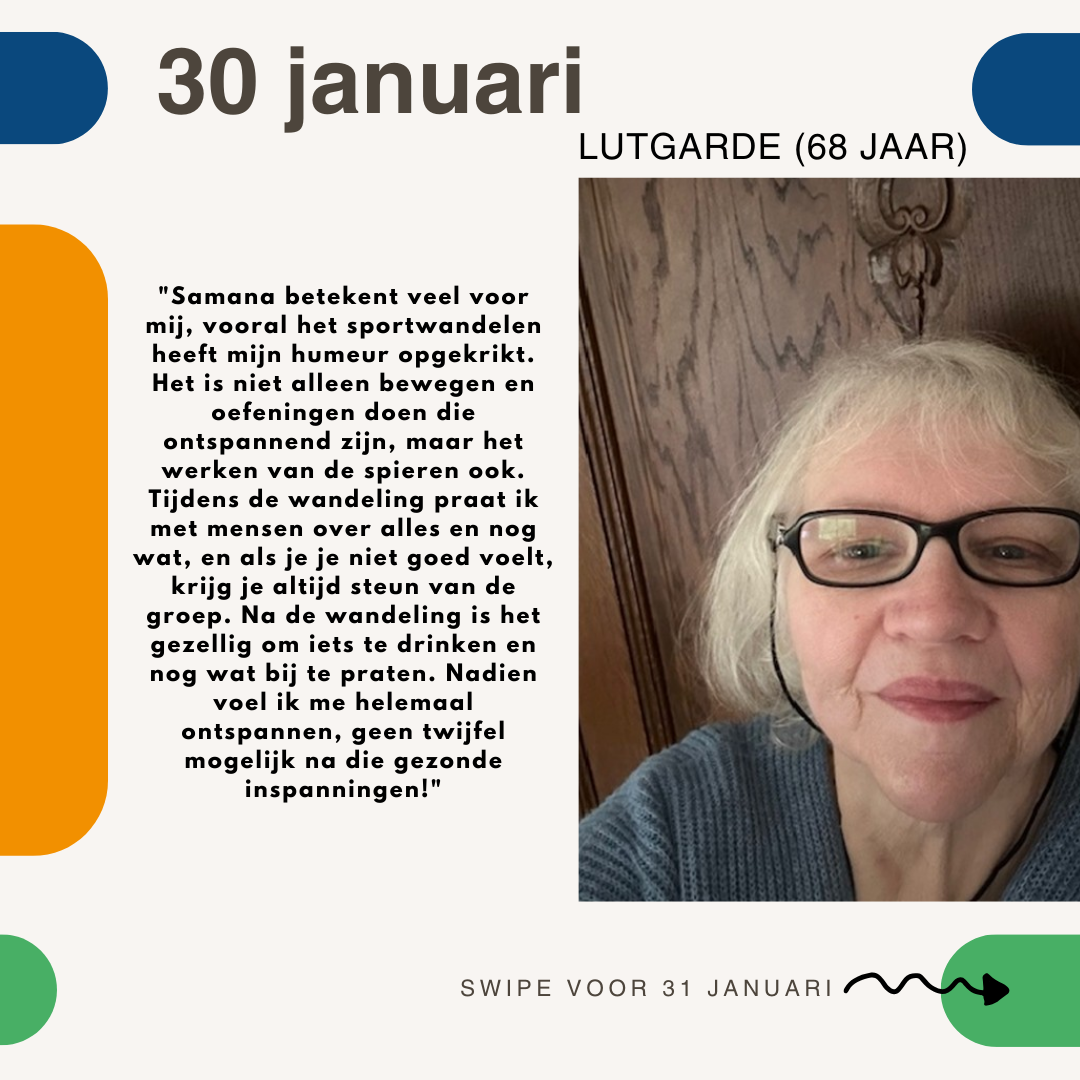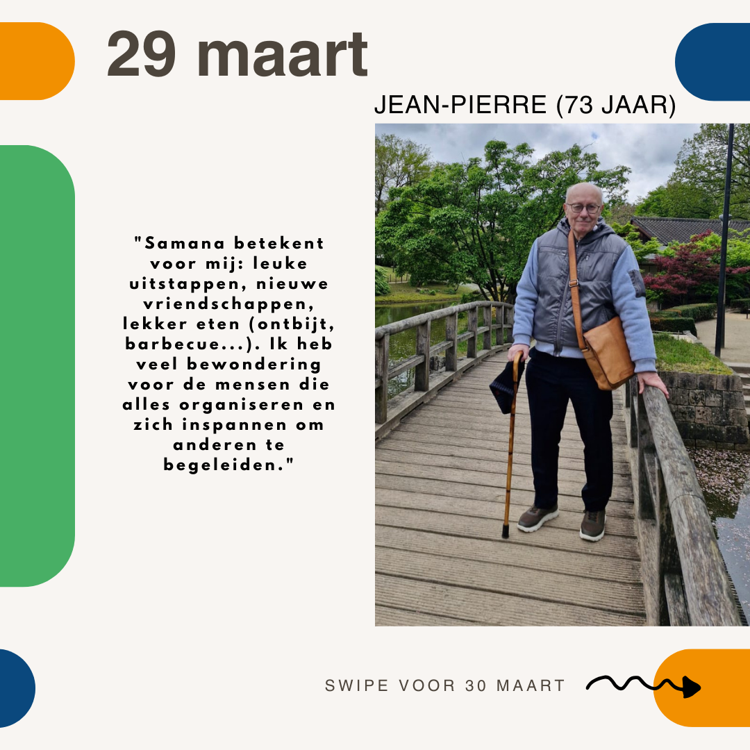 De kracht van verhalen: In ons digitale verjaardagsvriendenboek delen we dagelijks een ontroerend verhaal van een jarig Samana-lid. Zoals het verhaal van Ludo, die op 28 januari 65 werd: